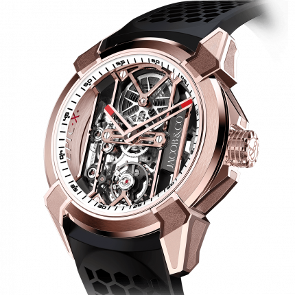Jacob & Co. Epic X Rose Gold White Neoralithe Inner Ring 44 mm watch. Model reference: EX100.43.PS.WB.A. 18K rose (pink) gold case. Skeleton dial. Manual-winding movement. This watch is coming with 2 straps: a black rubber strap and an additional black alligator leather strap. Swiss made. The watch comes in the original packaging, with a set of documents and 2 years warranty. At IDS Jewelry we offer new authentic watches at the best prices.