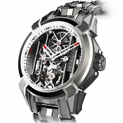 Jacob & Co. Epic X Titanium Bracelet White Neoralithe Inner Ring 44 mm watch. Model reference: EX100.20.PS.PP.A20AA. Titanium case. Skeleton dial. Manual-winding movement. Titanium bracelet. Swiss made. The watch comes in the original packaging, with a set of documents and 2 years warranty. At IDS Jewelry we offer new authentic watches at the best prices.