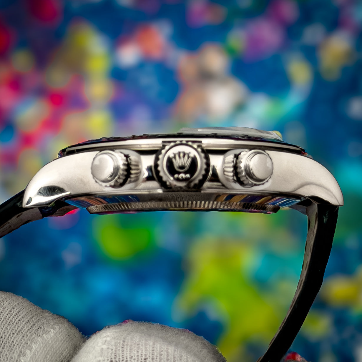 - 18k white gold Daytona configuration