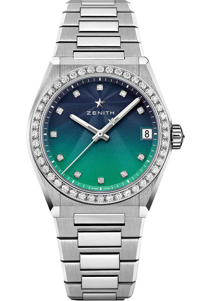 Zenith Defy Midnight Borealis Watch - 36 mm Steel Case - Blue To Green Gradient & GuillochŽ Dial - Steel Bracelet - 16.9200.670/34.MI001